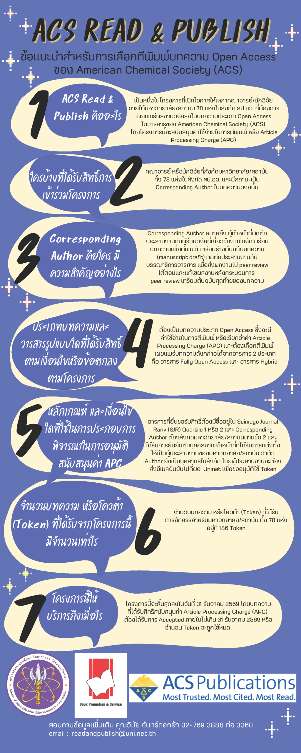 ตีพิมพ์ในวารสารที่อยู่ในฐานข้อมูล ACS ที่อยู่ใน Q1,Q2 ของ SJR เมื่อส่ง Submit manuscript แล้วต้องได้รับการ Accepted จากวารสาร บ.บุ๊คโปรฯ จะประสานงาน/แจ้งวิธีการและอนุมติ Token